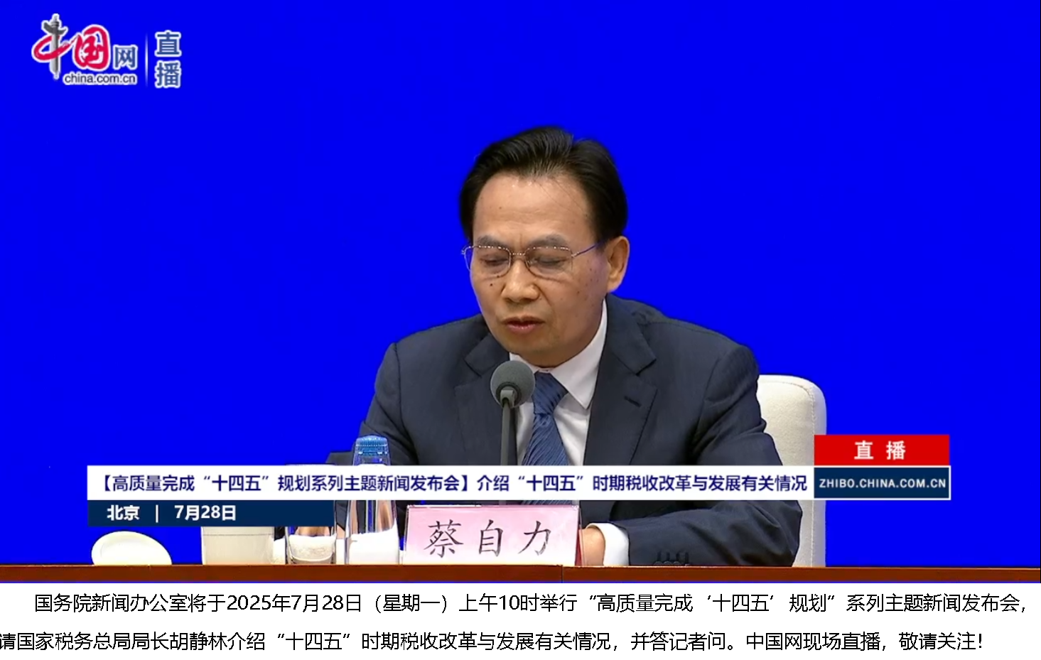 【高質量完成“十四五”規(guī)劃系列主題新聞發(fā)布會】介紹“十四五”時期稅收改革與發(fā)展有關情況2025-07-28