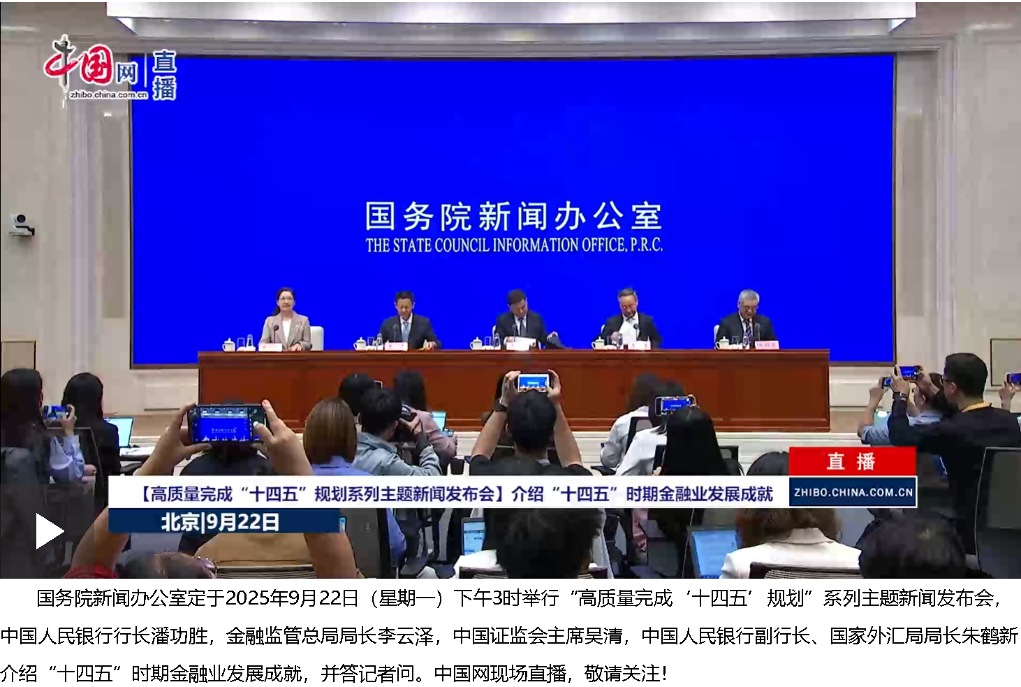 9月22日,國務院新聞辦公室在北京舉行“高質量完成‘十四五’規(guī)劃”系列主題新聞發(fā)布會,中國人民銀行行長潘功勝,金融監(jiān)管總局局長李云澤,中國證監(jiān)會主席吳清,中國人民銀行副行長、國家外匯局局長朱鶴新介紹“十四五”時期金融業(yè)發(fā)展情況,并答記者問。新華社記者 李鑫 攝