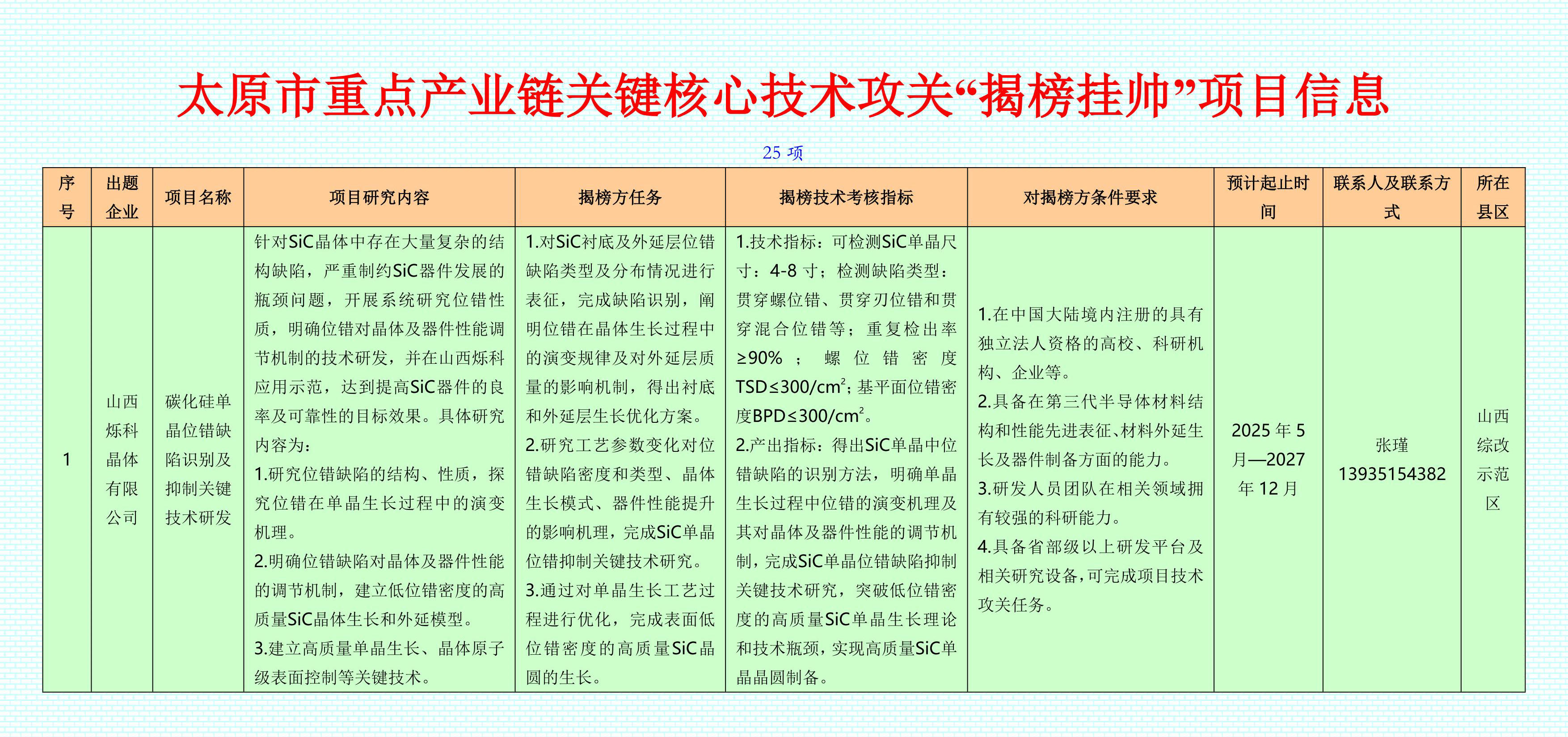 附件:1.太原市重點(diǎn)產(chǎn)業(yè)鏈關(guān)鍵核心技術(shù)攻關(guān)“揭榜掛帥”項目信息
