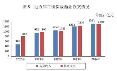 全年有 224 萬人享受工傷保險(xiǎn)待遇。全年工傷保險(xiǎn)基金收入 1321 億元,基金支出 1298 億元,年末工傷保險(xiǎn)基金累計(jì)結(jié)余 1439 億元(含儲(chǔ)備金 116 億元)。