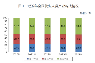 年末全國(guó)就業(yè)人員 73439 萬人,其中城鎮(zhèn)就業(yè)人員 47345萬人,占全國(guó)就業(yè)人員比重 64.5%。全國(guó)就業(yè)人員中,第一產(chǎn)業(yè)就業(yè)人員占 22.2%;第二產(chǎn)業(yè)就業(yè)人員占 29.0%;第三產(chǎn)業(yè)就業(yè)人員占 48.8%。