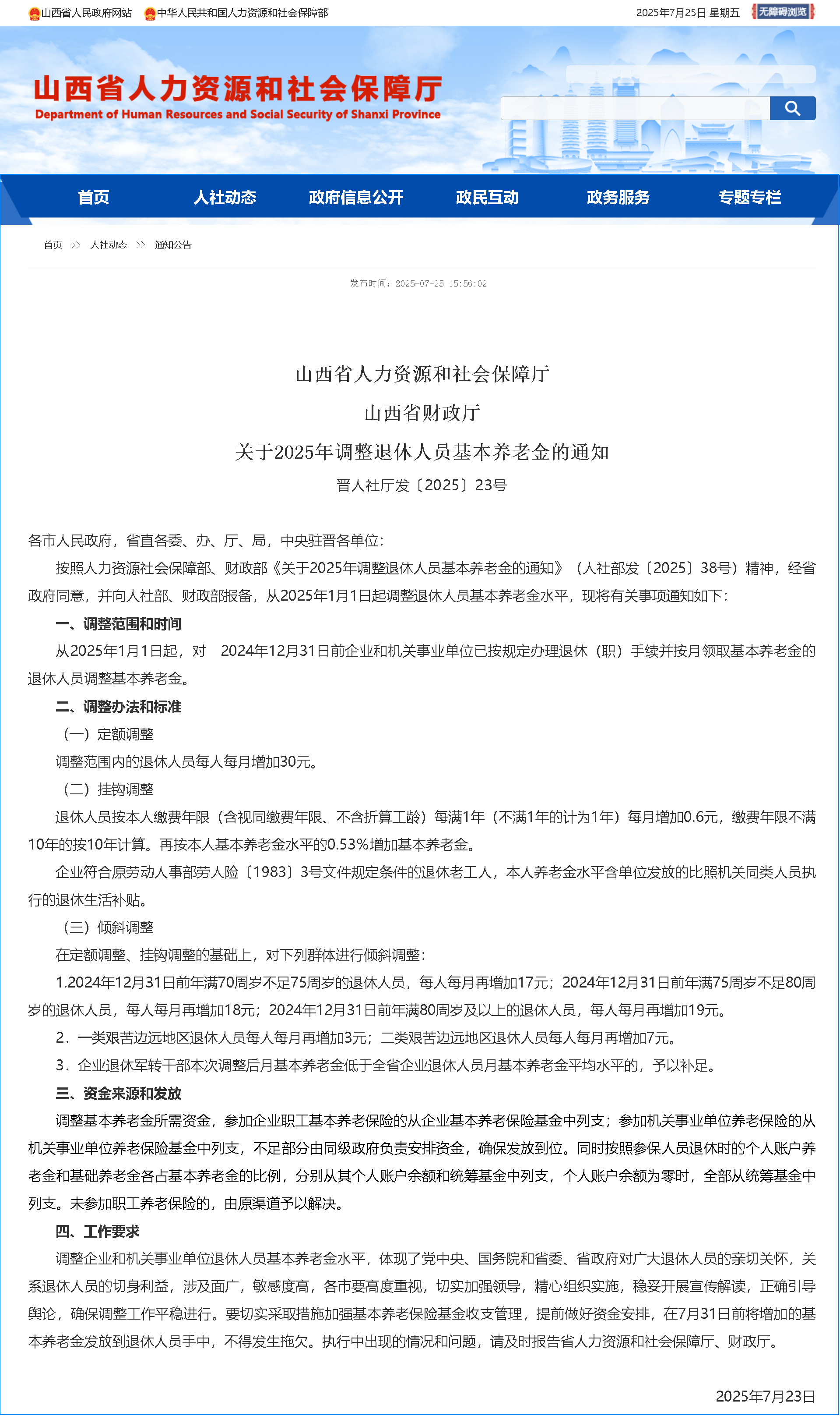 關(guān)于2025年調(diào)整退休人員基本養(yǎng)老金的通知