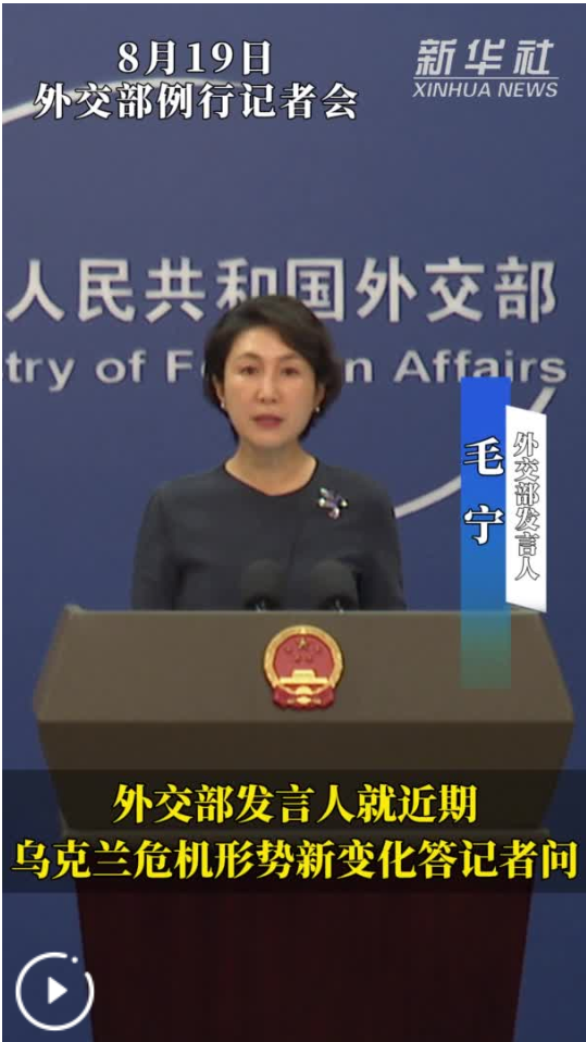 新華社北京8月19日電(記者馬卓言、邵藝博)外交部發(fā)言人毛寧19日在例行記者會上就近期烏克蘭危機形勢出現(xiàn)新變化回答記者提問。