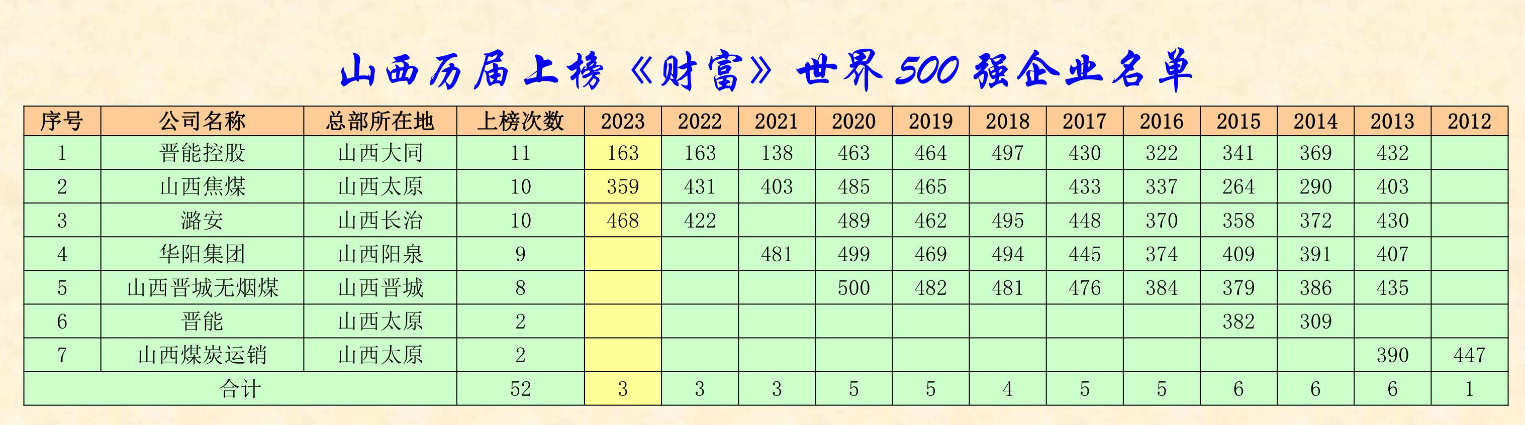自2012年以來十二年中,上榜《財(cái)富》世界500強(qiáng)的山西7家企業(yè)是誰呢!全部是煤炭企業(yè)!